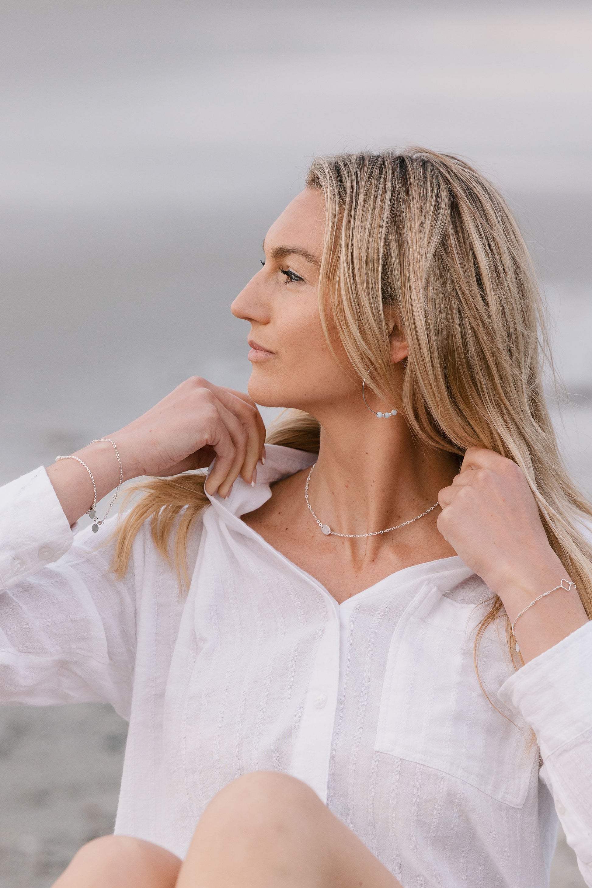 Radiate elegance and serenity with our Moonlit Glow Hoops—a stunning blend of celestial beauty and timeless design. Featuring delicate moonstone accents on your choice of gold-filled or sterling silver hoops, these earrings capture the soft, ethereal glow of moonlight.