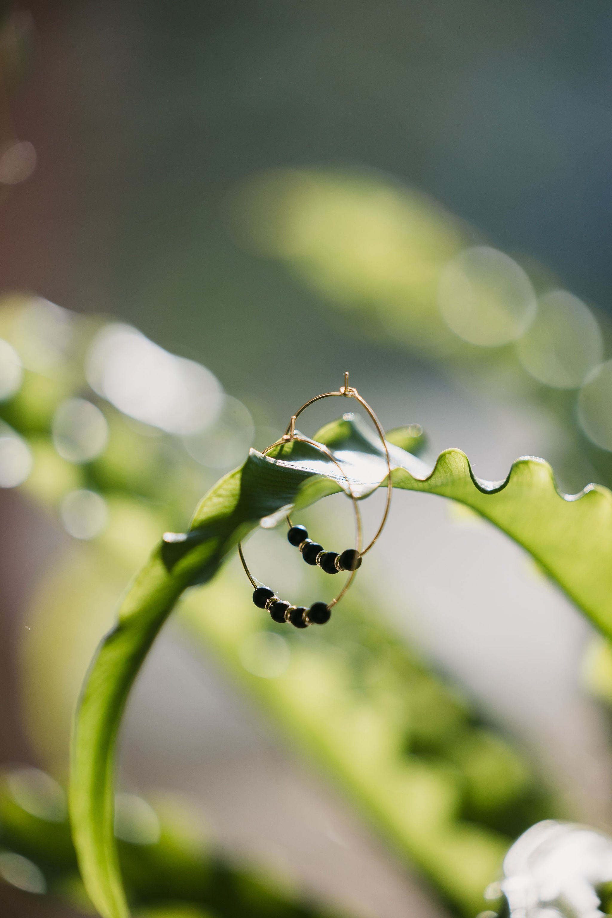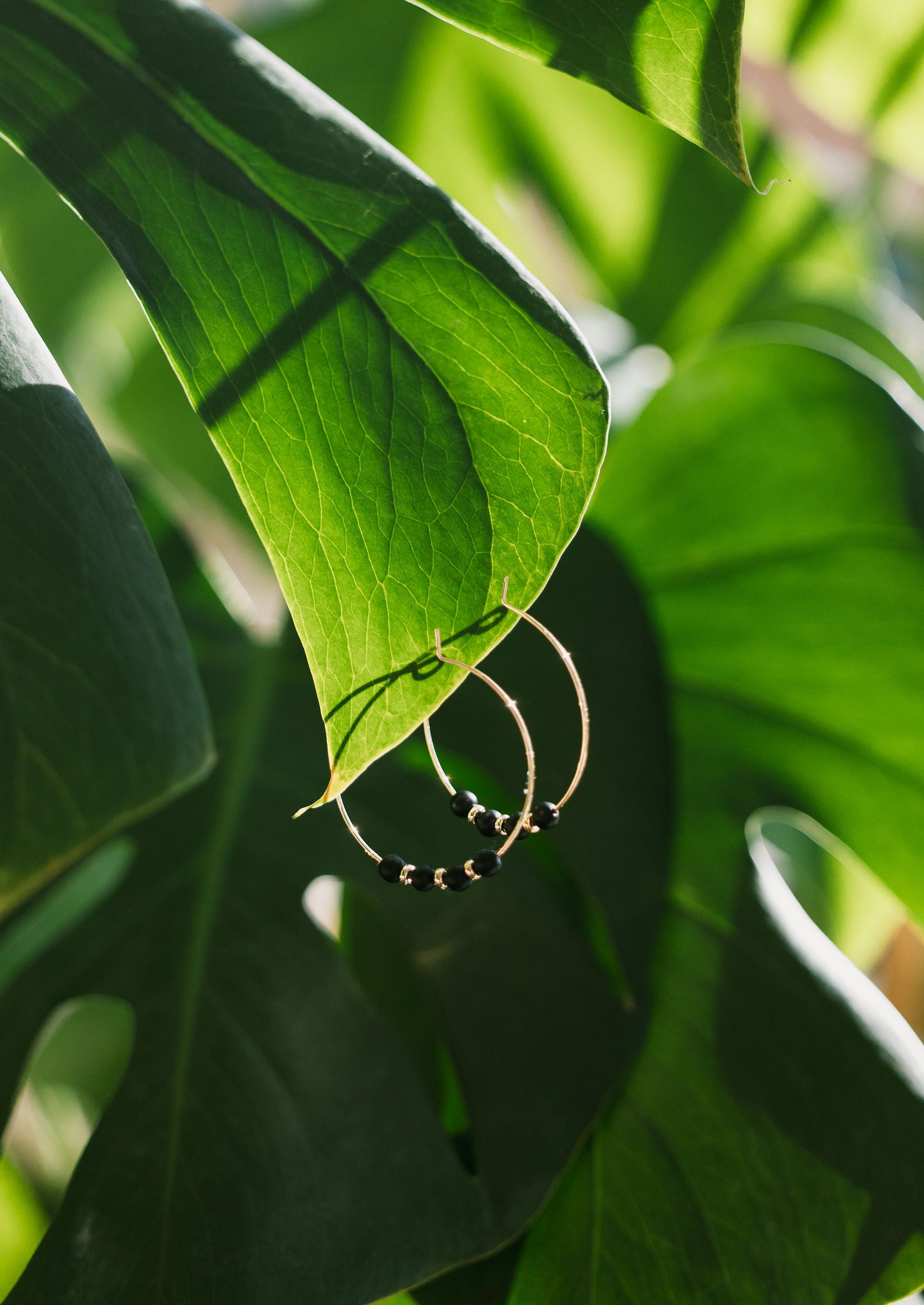 Dark sun, golden soul. The Soleil Noir Hoops are handcrafted hoop earrings that fuse radiant metals with the grounding energy of black onyx. Available in your choice of gold-filled or sterling silver, these minimalist earrings are a symbol of duality—light and shadow, presence and poise. Lightweight and easy to wear, they bring quiet strength and subtle glow to your every day.